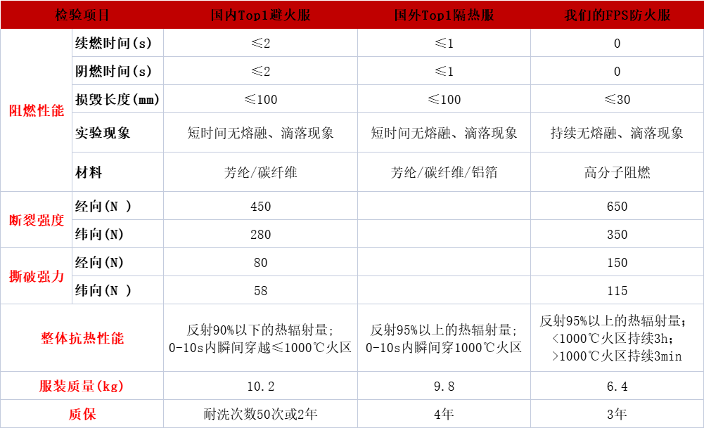 FPS防火服技術指標遠超*標準。