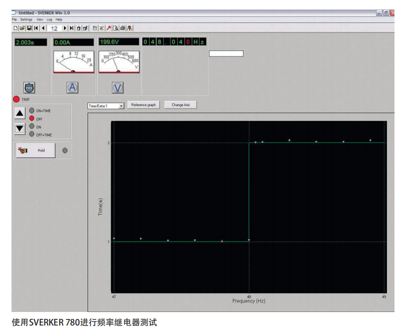 SVERKER Win軟件使現(xiàn)場(chǎng)工作變得更加簡(jiǎn)單,同時(shí)提供更加清楚的報(bào)告。測(cè)試時(shí)軟件使您能夠記錄電流、電壓和跳閘時(shí)間。SVERKER可以連接到PC的串口。測(cè)試結(jié)果可以直接通過表格或圖片進(jìn)入報(bào)告,或進(jìn)入其他外部程序,比如Microsoft Excel。SVERKER Win 使制作自定義報(bào)告變得簡(jiǎn)單。非常有用的一個(gè)功能每個(gè)測(cè)試點(diǎn)在測(cè)試過程中都由參考圖以及電流/電壓圖顯示。如果愿意圖片可以輸出到檢測(cè)報(bào)告。