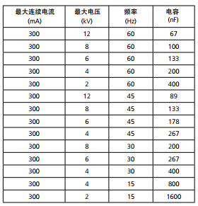300 mA (4 分鐘) 100 mA (連續(xù)) 如果使用選配的電感, 編號(hào) 670600,12 kV時(shí)的電流 輸出能達(dá)到4A |