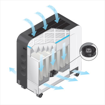 ?一層V形槽純凈椰殼活性炭主過濾網,載有總重量達6.5kg的純凈椰殼活性炭,特別有效過濾≤0.3微細污染顆粒物及高效過濾重度污染, 有效去除裝修所散發的甲醛和苯, 香煙煙氣、廚房油煙、燃煤所致等各種煙氣, 揮發性有機物(VOC’s), 臭氧和異味