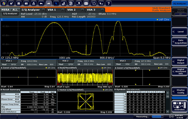 R&S?FSW提供新多標準無線分析儀功能,此功能在FSW的160MHz分析帶寬內(nèi)可以同時測量處于不同頻率點的不同標準信號(比如GSM, WCDMA, LTE信號)
