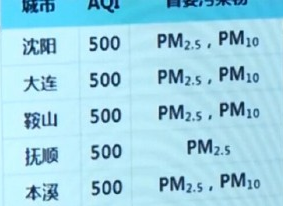 沈陽的PM2.5值*高一度達到1400微克/立方米,達到爆表級別。沈陽城中彌漫著灰白色霧霾,能見度不足百米,高層建筑在霧霾籠罩下若隱若現,車輛行駛較緩慢,行人大多佩戴口罩匆匆而過。
