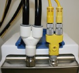 V100通過線纜給旋轉(zhuǎn)裂縫式、封閉環(huán)境式采樣器(R2S和RCG)的電動機供電,在采樣過程中電動機會帶動培養(yǎng)皿旋轉(zhuǎn),從而使通過裂縫的微生物均勻的分布在培養(yǎng)皿上。因為培養(yǎng)皿的旋轉(zhuǎn)速度是恒定的,所以用戶不但可以獲得均勻的樣品,也可以通過不同位置的菌落數(shù)量判斷微生物隨時間變化的情況。例如,采樣時間設(shè)定為360秒,R2S采樣器每秒旋轉(zhuǎn)1°,采樣完畢時培養(yǎng)皿旋轉(zhuǎn)一圈。如果在90°的位置發(fā)現(xiàn)菌落過多,則說明在第90秒時空氣中的微生物含量較高。